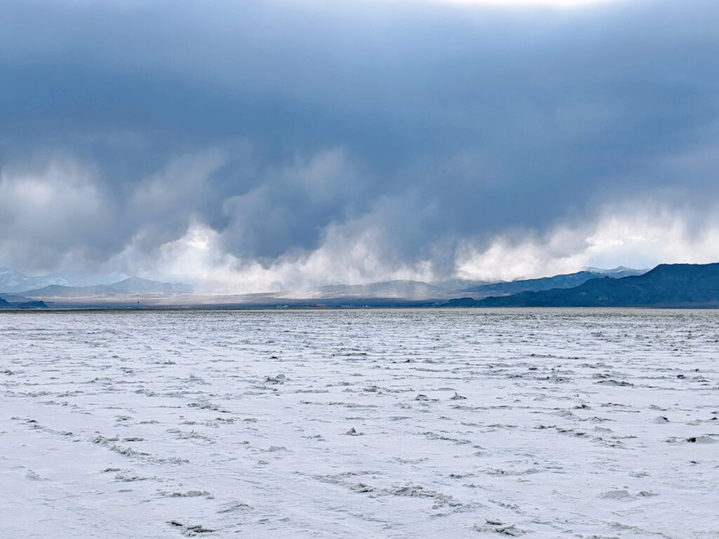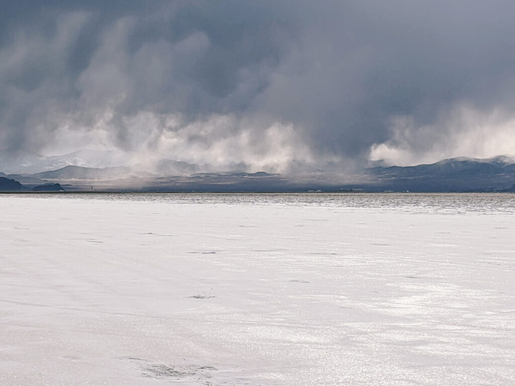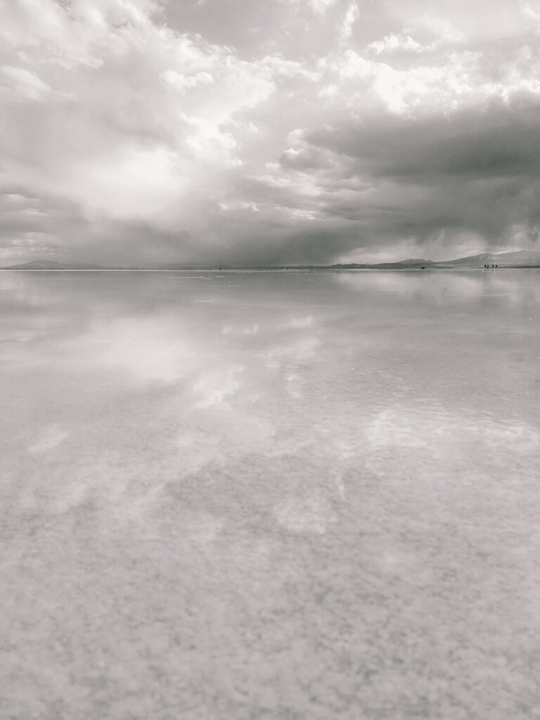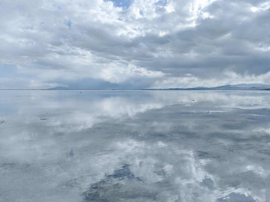 He isn’t wrong. Stepping onto the 30,000-acre expanse of salt crust on the western edge of the Great Salt Lake basin in Utah1 feels like leaving Earth behind. Blazing white salt crust, gritty and distinctive beneath your feet, stretches all the way to the horizon, where it runs into the Silver Island Mountains. Optical illusions blur that line, vanishing mountain bases before your very eyes. And after storms pass through, rainwater pools on the flats, creating an ethereal mirror.