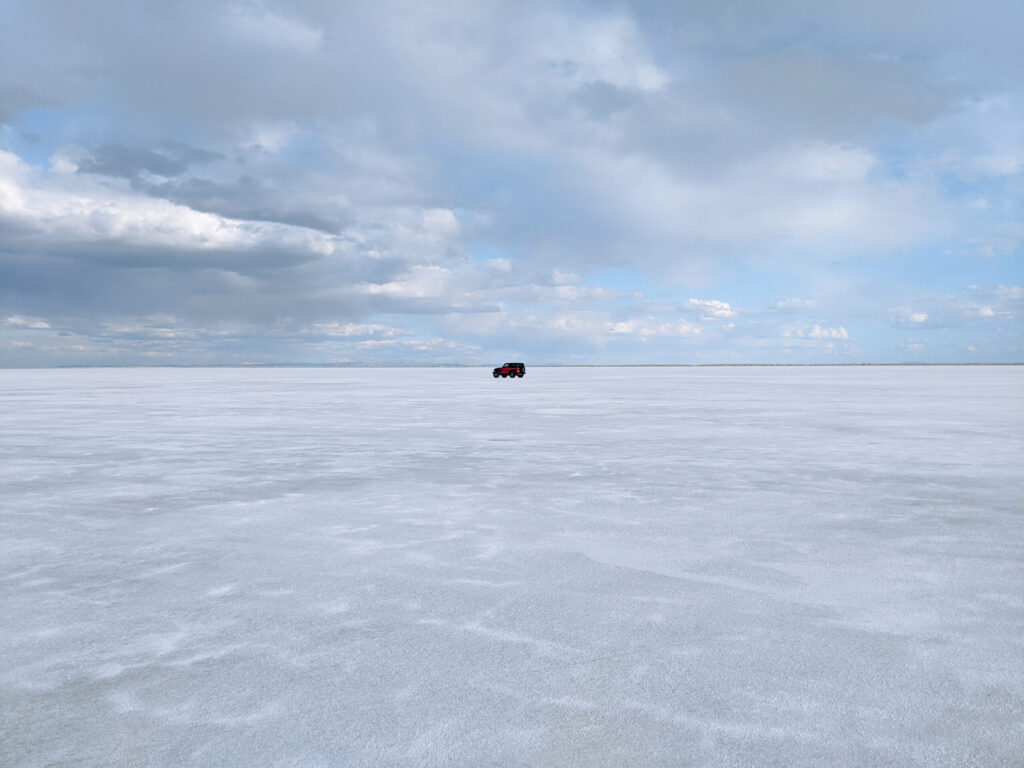 • The Bonneville Salt Flats are bare-bones when it comes to facilities. You’ll find a parking area and a sign so you know you’ve arrived, but there are no restrooms here. Make sure you’re good to go beforehand! You won’t find restaurants, gift shops, or coffee, either, so get what you need on the way.