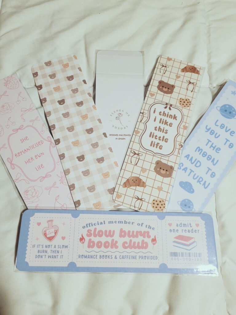 Not all bookmarks are created equal, but there are a lot of great ones out there. My favorite place to get bookmarks is Fleurs on Sunday, a shop based in the UK. I discovered them through Etsy and quickly became obsessed. Don’t ask how many of their bookmarks I own, because the number is embarrassing, but I can guarantee that you’re going to get a great product. The designs are adorable, and the texture is so nice! Be sure to order this ahead of time, though, as they can take a while to arrive depending on where you live.