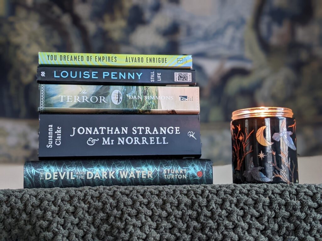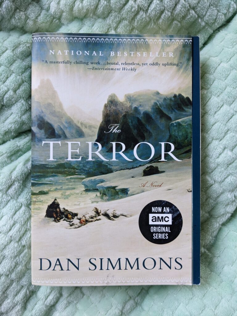 - The Terror by Dan Simmons: The Terror is a historical horror novel that provides an imagined explanation for the famous lost Franklin expedition, in which the titular ship HMS Terror and her sister ship Erebus became stuck in the ice while searching for the Northwest Passage through the Arctic. I’ve long been fascinated with nautical history, the Arctic, and expeditions in general, so this checks all my boxes!